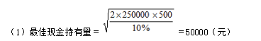 或:全年交易成本=全年持有现金的机会成本=5000/2=2500(元)