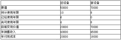 公司准备用新设备替换旧设备,新旧设备均采用直线法,均无残值,公司所得税率25%,项目资本成本10%,其他资料如下表。(单位:元)