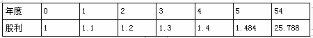 (5)该公司普通股当前每股市价为10元,本年度派发现金股利1元/股,证券分析师预测未来4年的股利每年增加0.1元,第5年及其以后年度增长率稳定在6%: