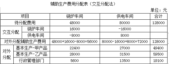 (2)已知锅炉车间本月发生生产费用48000元,提供蒸汽12000吨;供电车间本月发生生产费用80000元,提供电力200000度。