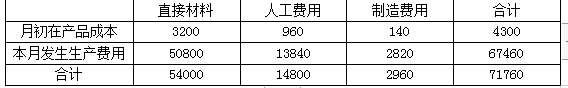 (2)甲产品直接材料在生产开始时一次全部投入,其他成本费用陆续发生,月末在产品平均完工程度40%。