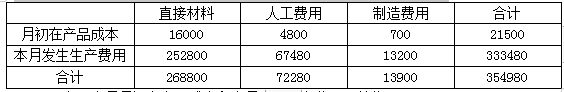 (3)甲产品本月月初在产品成本和本月发生生产费用(单位:元)。