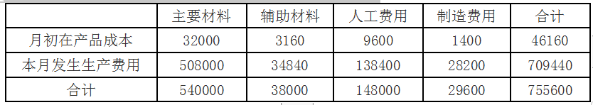 (3)本月月初在产品成本和本月发生生产费用。(单位:元)