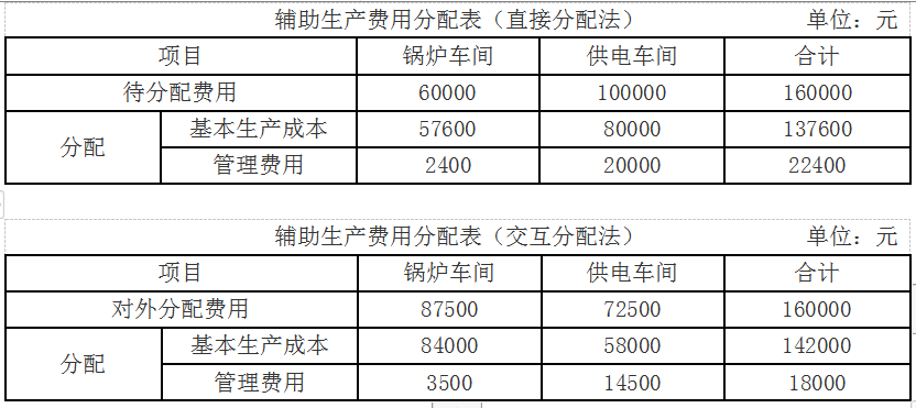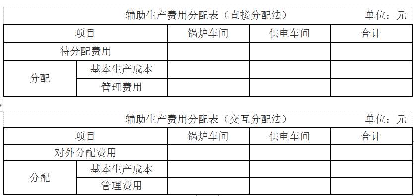 (1)分别采用直接分配法和交互分配法对辅助生产费用进行分配(结果填入下方表格中,不用列出计算过程)。