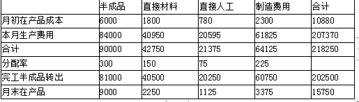 半成品分配率=90000÷300=300(元/件)
