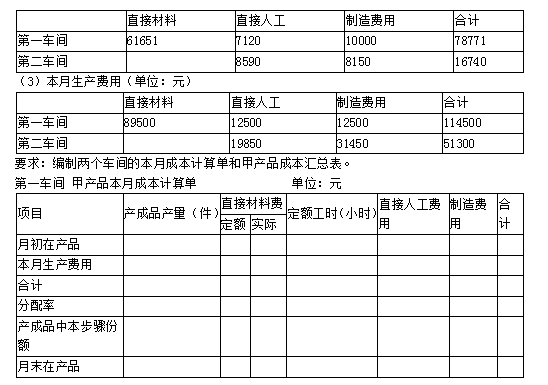 (2)月初在产品成本(单位:元)