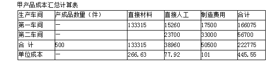 第二车间甲产品本月成本计算单单位:元