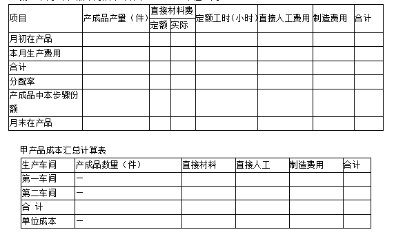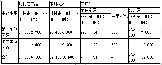 某企业生产甲产品,生产分两步骤在两个车间内进行,第一车间为第二车间提供半成品,第二车间加工为产成品。产成品和月末在产品之间