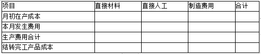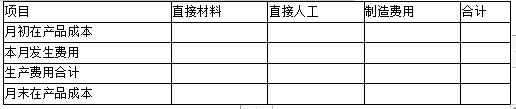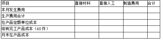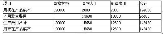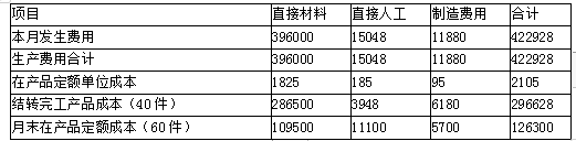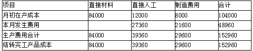 甲产品直接材料84000元,直接人工12000元,制造费用8000元;丙产品直接材料120000元,直接人工2000元,制造费用2000元。