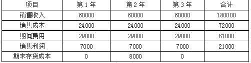 某企业最近3年新生产一种产品,销售单价为10元,单位变动生产成本为4元,固定生产成本为24000元/年。最近连续3年的销售量均为6000件,产量分别为6000件、8000件和4000件。销售和管理费用为5000元/年。
