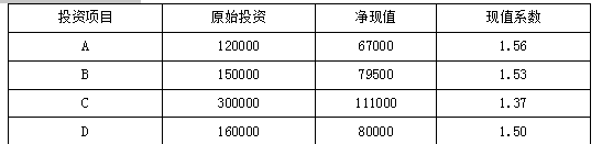 C、D四个投资项目可供选择,其中A与D是互斥项目,有关资料如下:单位:元