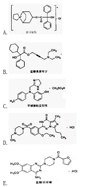 属于M受体拮抗剂,分子中含有季铵基团,不能通过血脑屏障,而没有中枢神经系统副作用的抗尿失禁药物是( )。