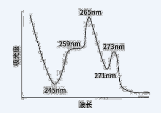 布洛芬的0.4%氢氧化钠溶液的紫外吸收光谱如下图所示。在布洛芬溶液的紫外吸收光谱中,肩峰的波长是( )。