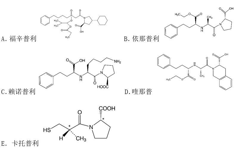 <p>分子中含有游离双羧酸的血管紧张素转换酶抑制药是( )。<img title="" alt="" width="426" h