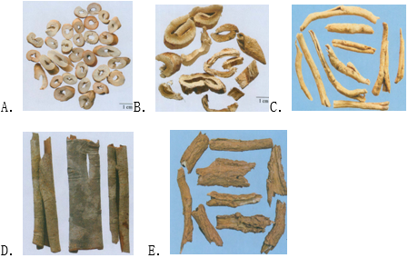 图示中药为桑白皮的是( )。