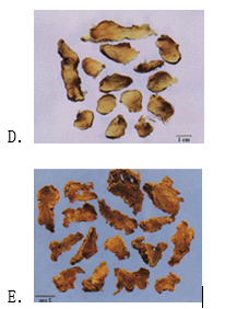 <p>试卷附图图16~图20,图示饮片味甘、微辛,嚼之略带黏性的是( )。<img title="" alt="" src="h