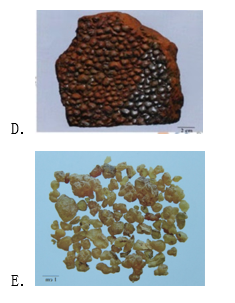 <p>试卷附图图6~图10中,图示中药主含Na<sub>2</sub>SO<sub>4</sub>·10H<sub>2</sub