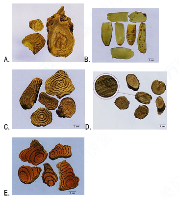 试卷附图图11~图15中,图示饮片为天麻的是( )。