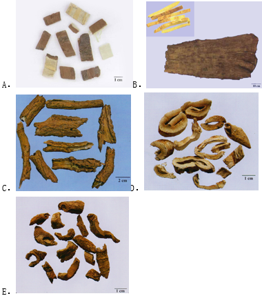 试卷附图图21~图25中,图示饮片为地骨皮的是( )。