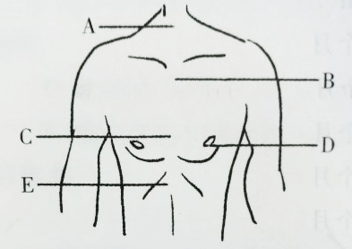 为成人进行心肺复苏(CPR),心脏按压的按压点应位于图示点的( )。