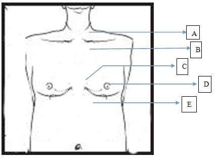 为成人进行心肺复苏(CPR),心脏按压的按压点应位于图示的( )。