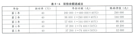 双倍余额递减法下每年应计提折旧额如表5-6所示。