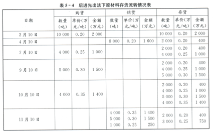 表5-4所示为企业采取后进先出法时货物的流转情况。