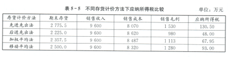 表5-5是对各种存货计价方法下的应纳所得税情况所做的比较。