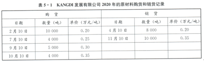 KANGDI发展有限公司2020年的购货和销货记录如表5-1所示。