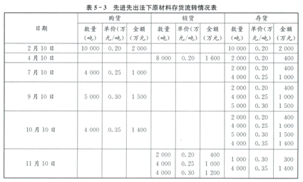 假设企业采用先进先出法,则货物的流转情况如表5-3所示。