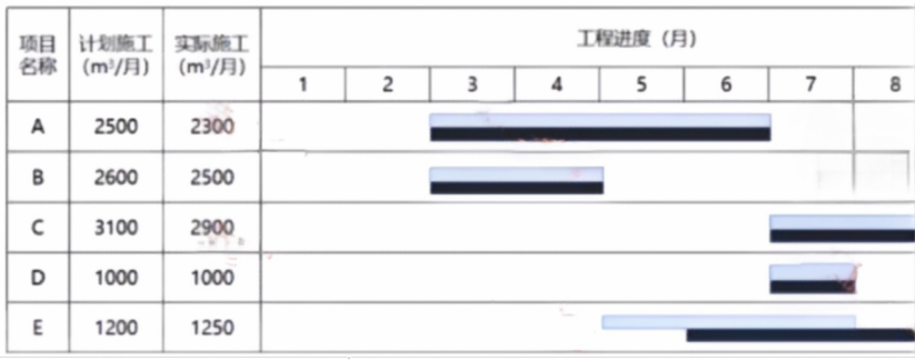 某混凝上工程施工情况如下图,清单综合单价为1000元/m³,按月结算,根据赢得值法,该工程6月末进 度偏差(SV)是( )万元。
