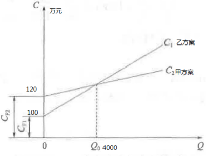 E、两个方案总成本相等时,甲方案的单位产量固定成本大于乙方案