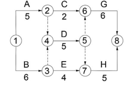 [多选题]某双代号网络计划如下图,其关键工作有( )。 题81图