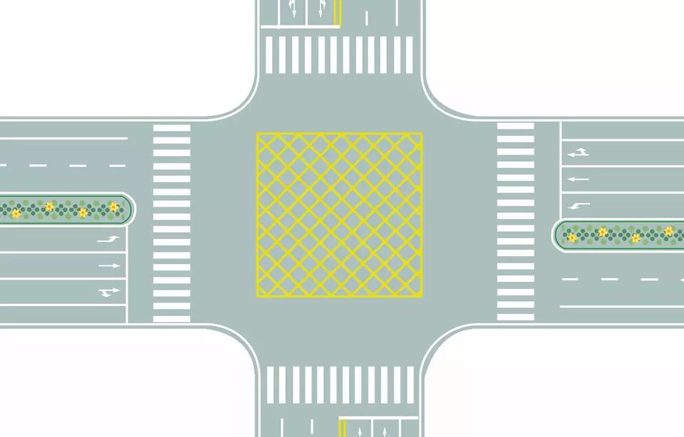 图中路口中央黄色路面标记是什么标线?