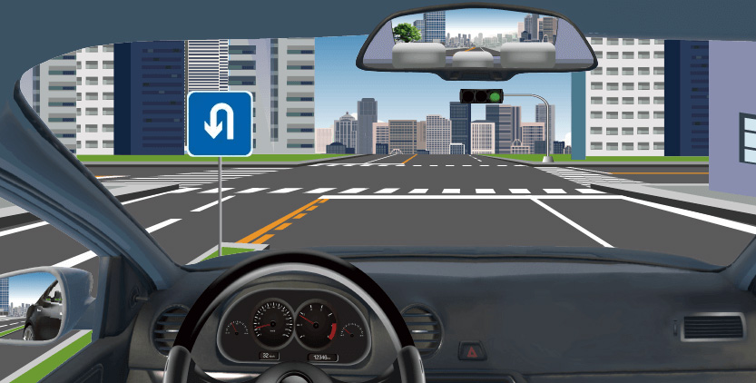如图所示,驾驶机动车想要在前方路口掉头,应怎样做?