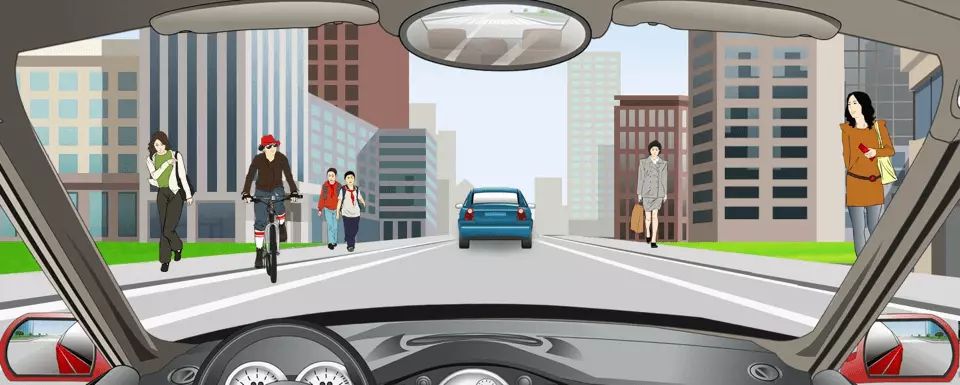 如图所示,在没有道路中心线的城市道路上驾驶机动车,最高行驶速度不得超过每小时多少公里?