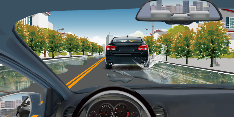 雨天驾车出行,遇积水路段应如何跟车行驶?