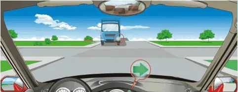 在一个没有信号灯的路口右转弯时,遇到图中所示的对面车辆发出左转信号,怎么做是正确的?