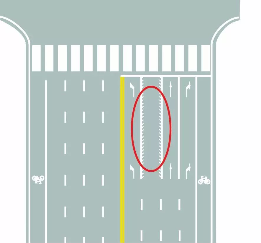 图中圈内的锯齿状白色实线是什么标线?