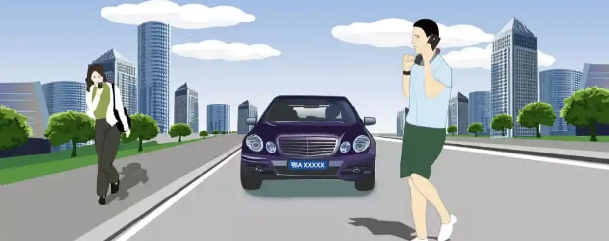如图所示,驾驶机动车遇到这种情况,要减速慢行,同时持续鸣喇叭提醒行人注意查看路况。