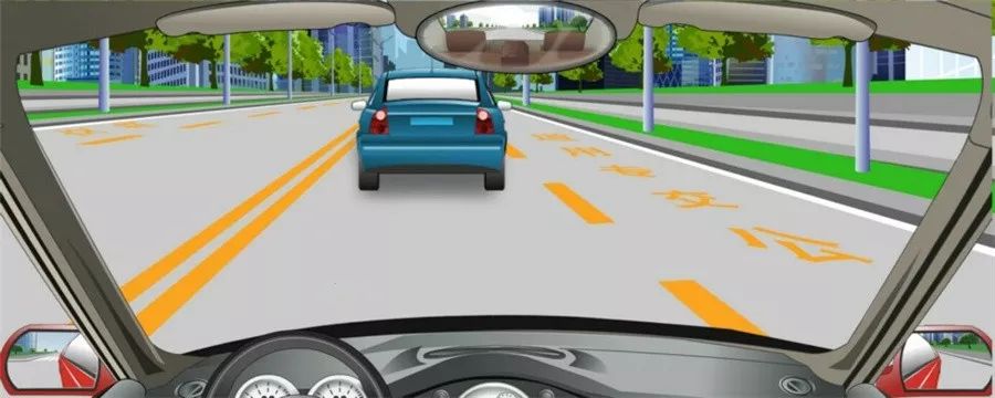 如果遇到图中这种情况需要超车时,可以在不影响公交车通行的前提下借公交车道超越。
