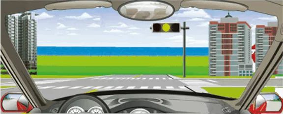<p>在路口看到图中所示信号灯不断闪烁时,要减速或停车瞭望,确认安全后通过。<br><img style="width: 100