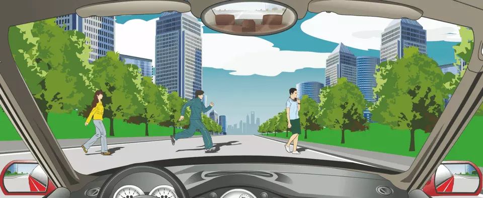 遇到这种情形时要停车避让行人。