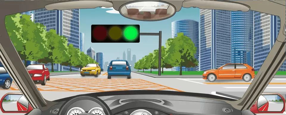 <p>在交叉路口遇到这种情况时,要在红灯亮以前加速通过路口。<br><img style="width: 100%;height