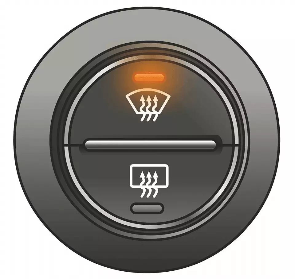 按下这个开关,后风窗玻璃除霜器开始工作。