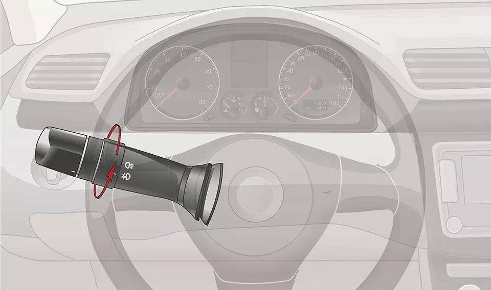 灯光开关在该位置时,前雾灯点亮。