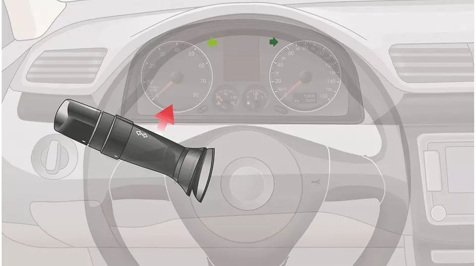将转向灯开关向上提,左转向灯亮。