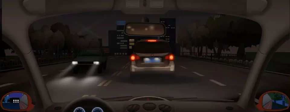夜间在这种情况下跟车要注意观察前车信号灯的变化,随时做好减速或停车的准备。