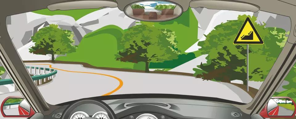 <p>驾驶机动车遇到这种道路要提前减速减挡,利用发动机制动控制速度。<br><img style="width: 100%;he