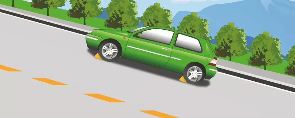 <p>因故障在山区下坡路段长时间停车时,要用这种办法塞住车轮。<br><img style="width: 100%;heigh